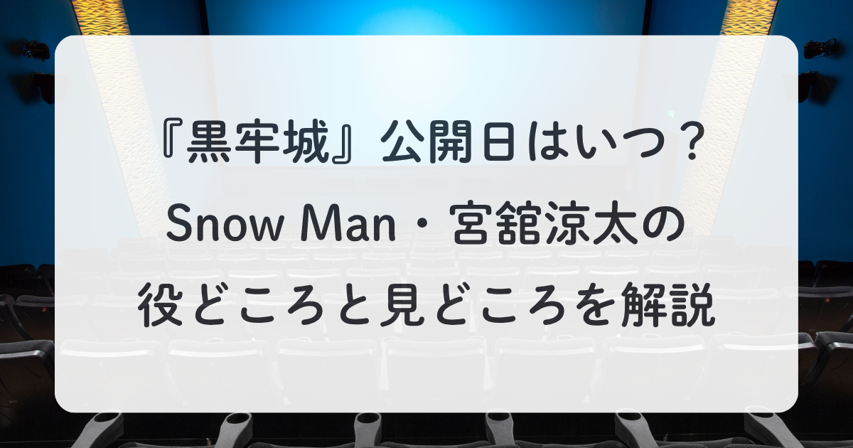 話題の映画『黒牢城』が実写化され、公開日やキャストに注目が集まっています。特にSnow Manの宮舘涼太さ…