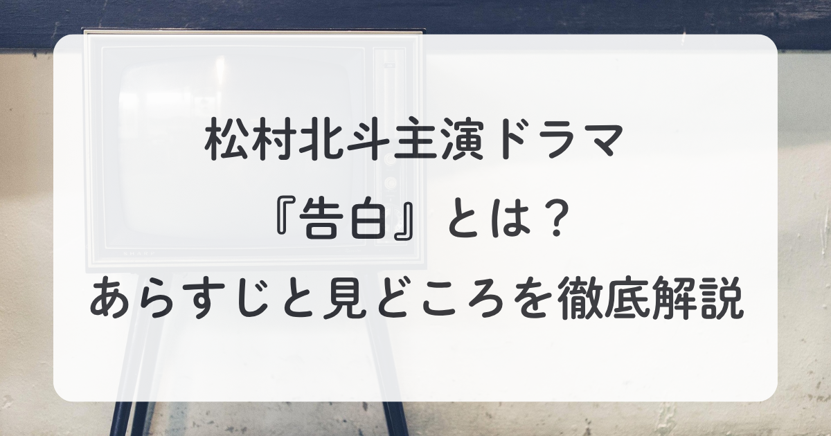 SixTONESの松村北斗さんが主演を務める新ドラマ『告白』が話題になっています。「どんなストーリー?」「…
