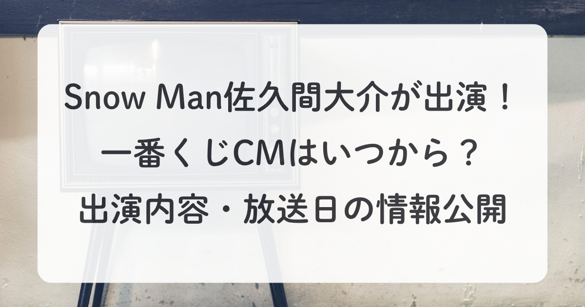 Snow Manの佐久間大介さんが出演する「一番くじ」のCMが話題になっています。放送日はいつからなのか、ど…