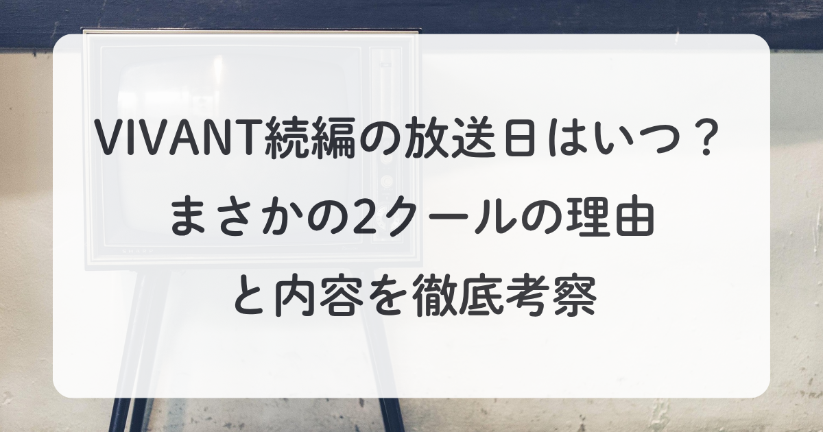 VIVANT続編の放送日はいつ?2クールの理由と内容を徹底考察