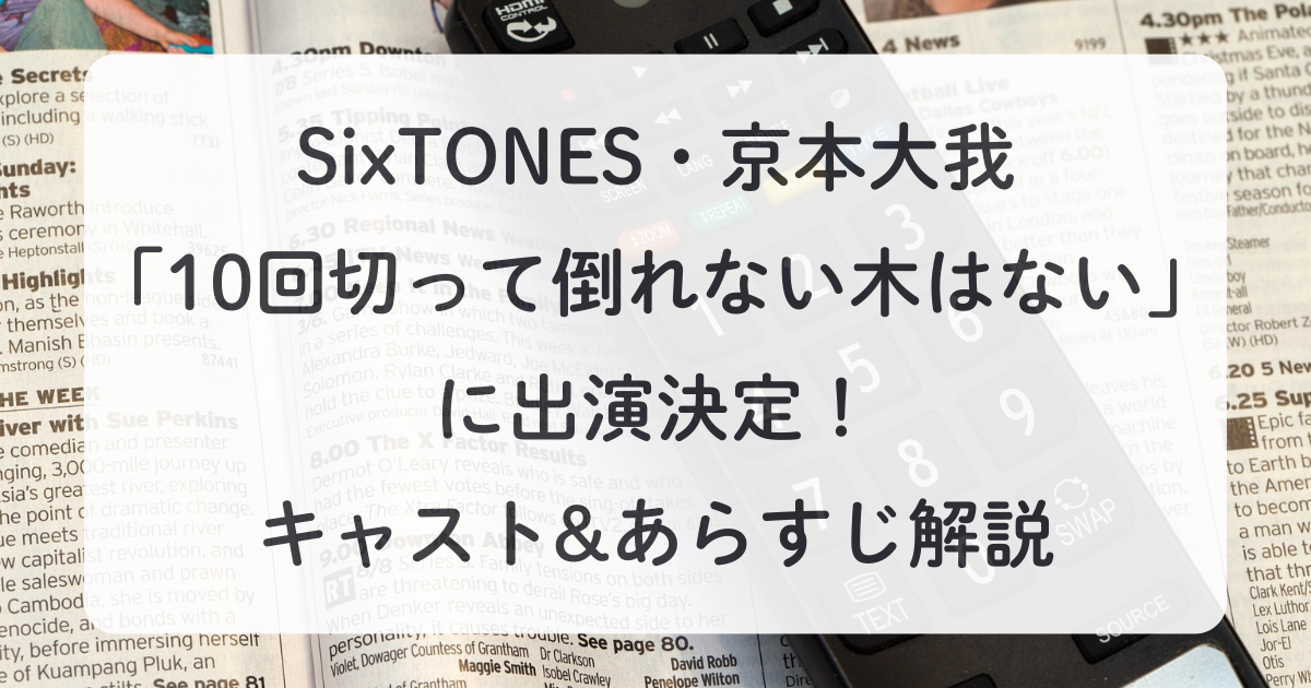 SixTONESの京本大我さんが出演するドラマ『10回切って倒れない木はない』に注目が集まっています。久しぶ…