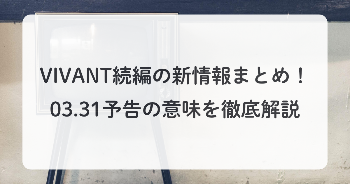 『VIVANT』続編の新情報が再び話題になっています。中でも意味深に出された「03.31」の予告が何を示してい…