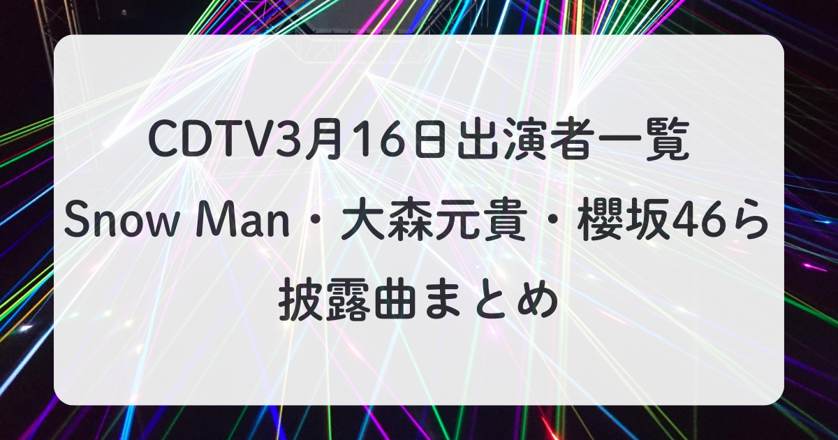 CDTV3月16日出演者一覧!Snow Man・大森元貴・櫻坂46ら披露曲まとめ