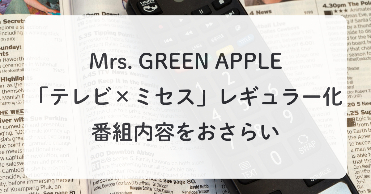 人気バンドMrs. GREEN APPLEの番組『テレビ×ミセス』がレギュラー化すると発表され、音楽ファンの間で話題…