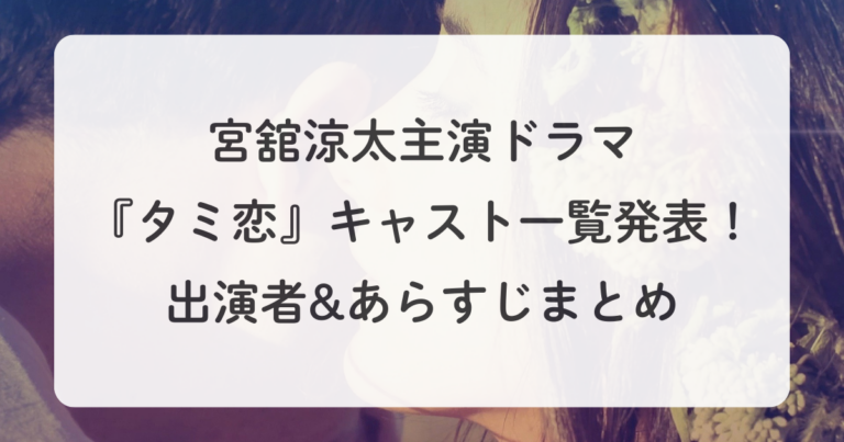 Snow Manの宮舘涼太さんが主演を務めるドラマ『ターミネーターと恋しちゃったら(通称:タミ恋)』が話題になっています。 個性的なタイトルとユニークなストーリー設定に、放送前から注目が集まっています。 この記事では、ド … 続きを読む 宮舘涼太主演ドラマ『タミ恋』キャスト一覧発表!佐藤江梨子ら出演者やあらすじのまとめ