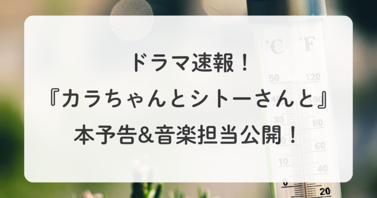 ドラマ『カラちゃんとシトーさんと、』の本予告映像が公開され、作品の世界観やストーリーの一部が明らかになりました。 主演はSnow Manの岩本照さんとTravis Japanの松田元太さんで、注目度の高い共演として話題に … 続きを読む 速報!ドラマ『カラちゃんとシトーさんと、』本予告公開|音楽担当はfox capture planに決定!