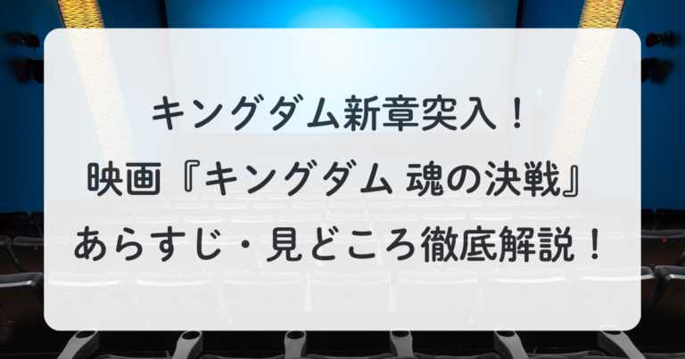 映画『キングダム』の新作情報が届きました。 『キングダム 魂の決戦』とタイトル情報も解禁され、最新作がどんな物語になるのか注目が集まっています。 今回は、公開日やあらすじ、現時点で発表されているキャスト情報を整理しながら … 続きを読む 映画『キングダム 魂の決戦』とは?あらすじ・キャスト・公開日を徹底解説
