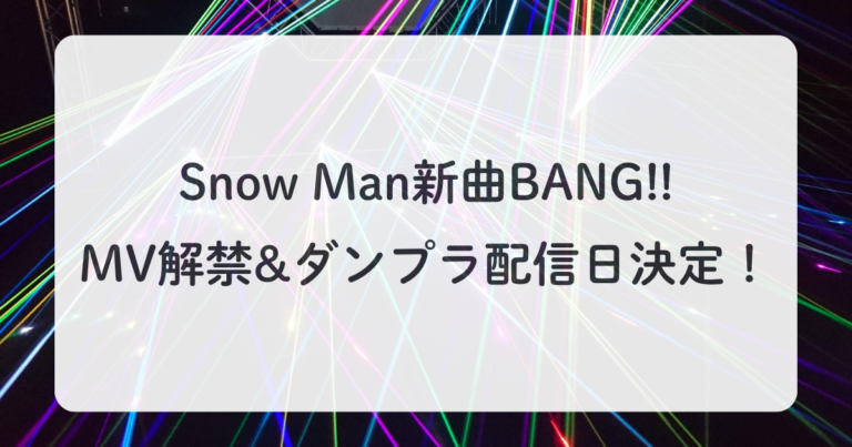 Snow Manの新曲「BANG!!」のMVの解禁情報が公開され、大きな話題になっています。 ダンスプラクティス動画(ダンプラ)の配信日や、MVの見どころが気になっている方も多いのではないでしょうか。 今回はBANG!! … 続きを読む Snow Man新曲BANG!!MV解禁!ダンプラ配信日はいつ?見どころも解説