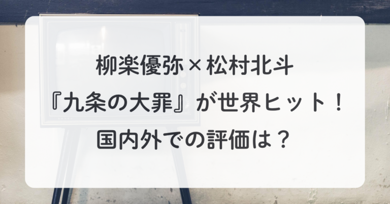 柳楽優弥さんと松村北斗さんが出演する『九条の大罪』が世界的にヒットし、海外でも高い評価を受けています。 どんな作品なのか、なぜここまで評価されているのか気になっている方も多いのではないでしょうか。 今回は作品の内容や見ど … 続きを読む 柳楽優弥×松村北斗『九条の大罪』が世界ヒット!国内外での評価は?