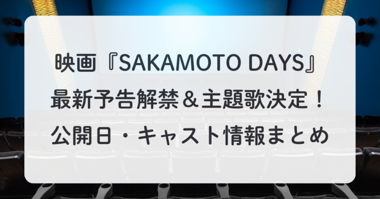 大人気漫画の実写映画化として注目を集める『SAKAMOTO DAYS』。ついに最新予告映像が解禁され、主題歌も発表されました。 原作ファンはもちろん、アクション映画好きからも期待が高まっています。 この記事では、公式発表 … 続きを読む 映画『SAKAMOTO DAYS』最新予告解禁&主題歌決定!公開日・キャスト情報まとめ