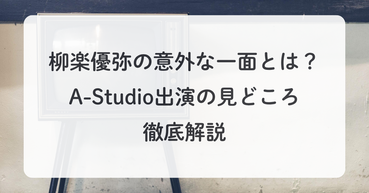 柳楽優弥さんが『A-Studio』に出演し、普段は見られない“意外な一面”が話題になっています。シリアスな役…