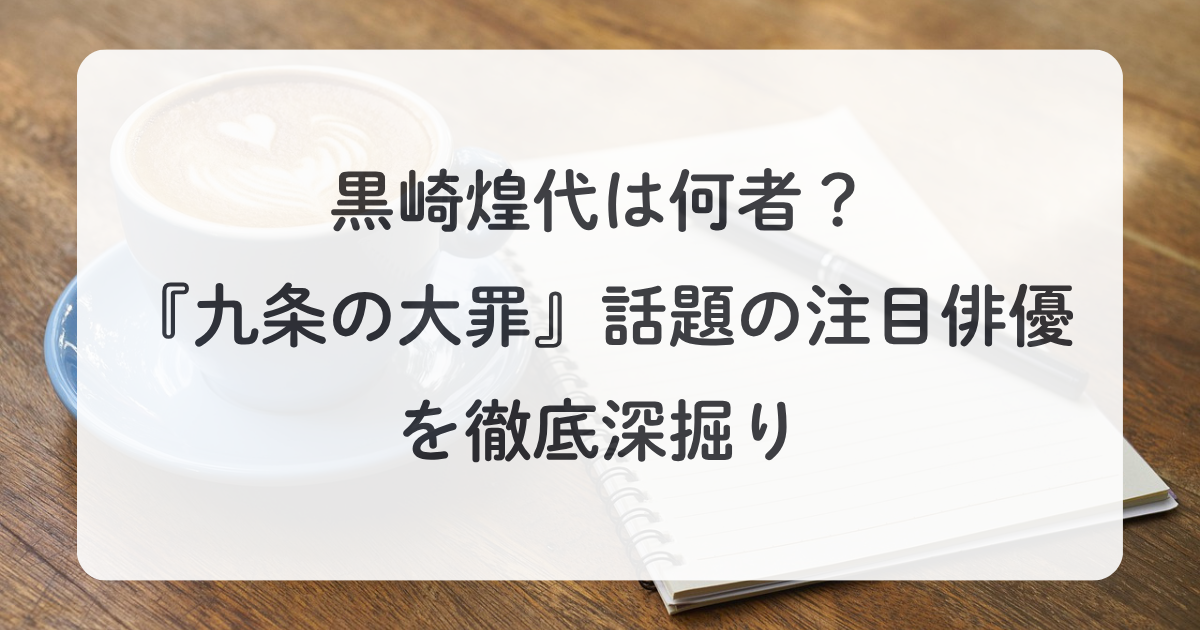 ドラマ『九条の大罪』に出演し、黒崎煌代さんの演技が話題になっています。「この俳優は誰?」「どんな経…
